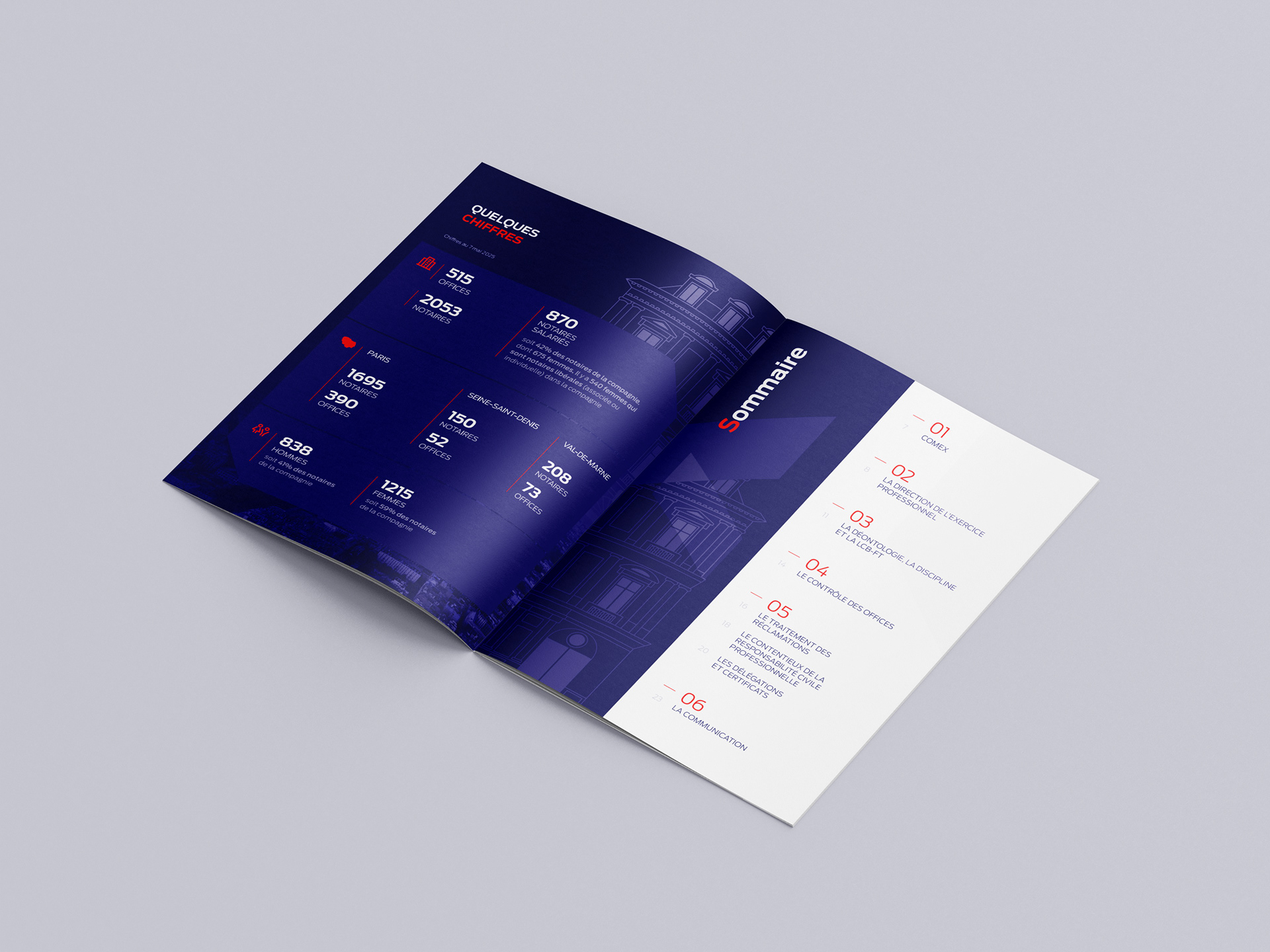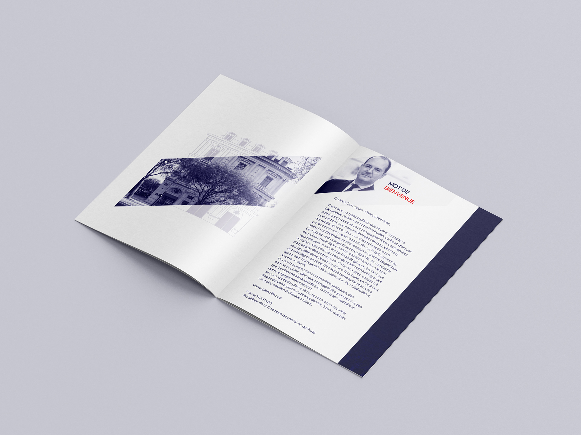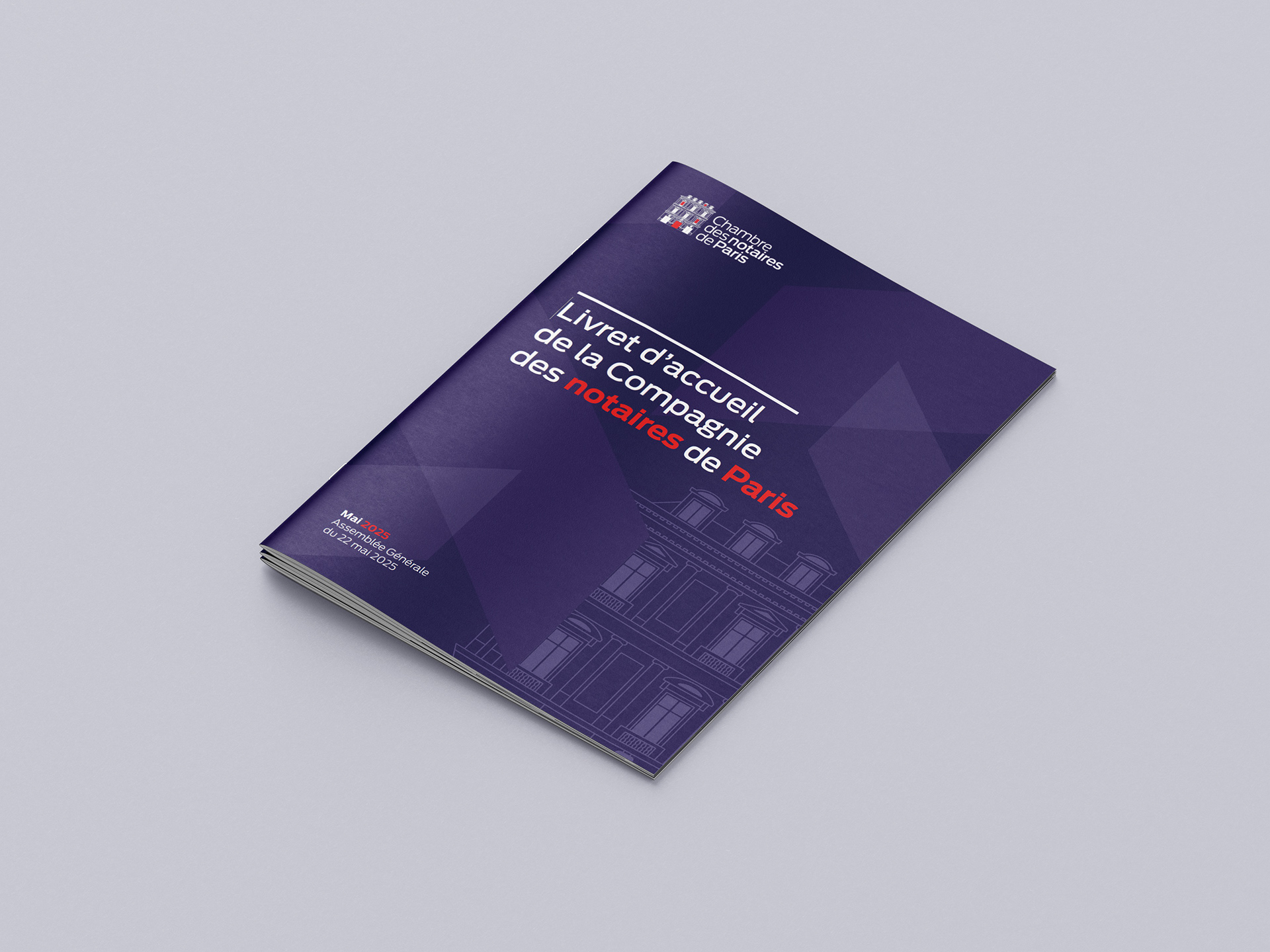 Mise en page et graphisme du livret d'accueil 2025 de la Chambre des Notaires de Paris